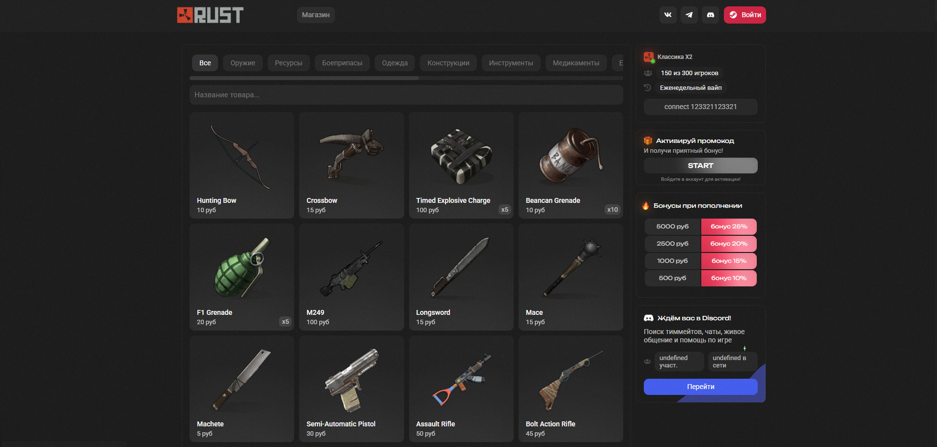 Магазин внутриигровых товаров проекта gsakstestgdsg по игре RUST. Присоединяйся к нам и играй на лучшем проекте игры RUST!testgagasxf.gamestores.app
